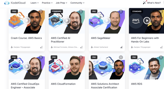 Selecting AWS from the category will display a list of all the AWS courses currently offered in our system.
